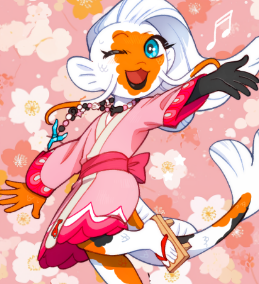 Born on the summer solstice of YD 6975 in the primarily apkallu-settled town of Widpool, Kasumi developed her interest in music and storytelling early in life. Kasumi's father, a fisherman by trade, regaled her with stories of apkallu folk heroes, bawdy sea shanties and traditional song-prayers for luck and favorable weather. Kasumi's mother, an artist primarily working with coral, further encouraged Kasumi's creative inclinations. The first instrument she learned to play was the biwa but she favors the shamisen for its simplicity and distinctive sound.
